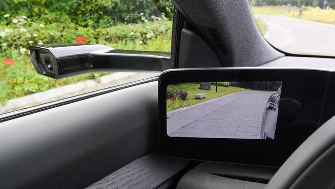 车内,简约豪华又富有科技质感的氛围是E5重要的表达。一体贯穿式的曲面屏延展至副驾,功能排布清晰明了。大屏两侧,电子外后视镜取代了传统后视镜,将路面信息显示于两端,配合各项警示提醒,能够提供更多行车安全帮助。就如我们途中碰上的突至大雨,车辆两侧的状况也丝毫不受雨水的影响,转弯并线颇为安心,只是有别于物理镜面的视觉效果尚需要时间上的适应。