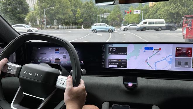 驶入都江堰市区,小城的烟火气息扑面而至,伴随而来的,还有交通环境的骤然复杂。车辆搭载的这套奥迪全场景辅助驾驶系统有了用武之地。该系统由奥迪携手Momenta合作开发,基于Momenta飞轮大模型,通过搭载27个感知硬件单元,以及英伟达Orin-X芯片的算力支持,能够实现在全国范围内城市道路、高速公路及自动泊车等场景的辅助驾驶能力。